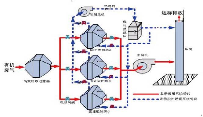 設(shè)備原理: 在催化劑的作用下,有機廢氣在較低的起燃溫度下(250~400℃),發(fā)生無焰燃燒,碳氫化合物被氧化分解為CO2和H2O,同時放出大量熱能,從而達到去除廢氣中的有機物的目的,該方法是凈化有機廢氣、消除惡臭的有效手段之一。 含VOCs的廢氣經(jīng)風(fēng)機導(dǎo)入換熱器,經(jīng)由換熱器加熱后,再通過催化燃燒器,這時廢氣已被加熱至催化分解溫度,通過催化劑床,催化分解會釋放熱能,而VOCs被分解為二氧化碳及水。經(jīng)凈化后氣體溫度升高,再次進入換熱器與未經(jīng)處理的VOC廢氣進行熱交換,以此減少能源的消耗。后,凈化后的氣體從煙囪達標排放到大氣中。 催化劑:優(yōu)選貴金屬催化劑(Pt、Pd和Au),具有起燃溫度低(280℃起燃),去除效率高(>95%),具有較高催化活性,同時還耐高溫、抗氧化、耐腐蝕。催化劑改變化學(xué)反應(yīng)速度而本身又不參與反應(yīng),反應(yīng)前后基本沒有消耗,使用壽命長。 廢氣預(yù)處理:為了避免催化劑床層的堵塞和催化劑中毒,廢氣在進入床層之前必須進行預(yù)處理,以除去廢氣中的粉塵、液滴及催化劑的毒物。 預(yù)熱裝置:催化劑都有一個適宜的催化活性溫度,對催化燃燒來說稱為催化劑起燃溫度,必須使廢氣和床層的溫度達到起燃溫度才能進行催化燃燒。對于排出的廢氣本身溫度就較高的場合,如漆包線、絕緣材料、烤漆等烘干排氣,溫度可達300℃以上,則不必設(shè)置預(yù)熱裝置。